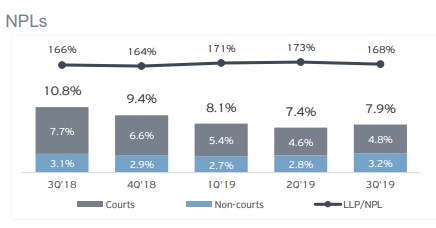 Темпы роста чистого процентного дохода возобновились после замедления во 2-3 кв. 2018 года и составили 55% в 3 квартале 2019 года по сравнению с аналогичным периодом прошлого года.