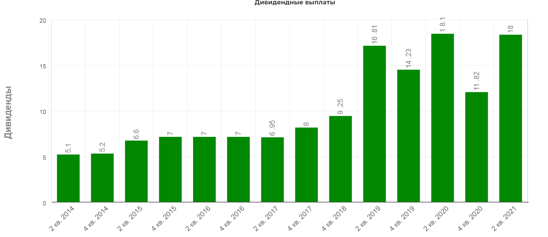 Компания платит два раза в год, с ростом выплаты за  календарный год. Плюс байбэк.