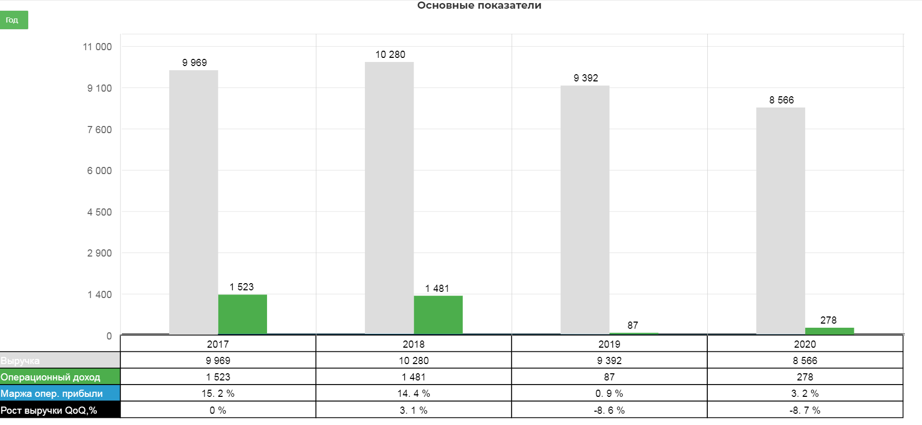 По итогам отчетного периода выручка РУСАЛа сократилась на 11,8% – до 8 566 млн долл. США по сравнению с 9 711 млн долл. США в 2019 году.